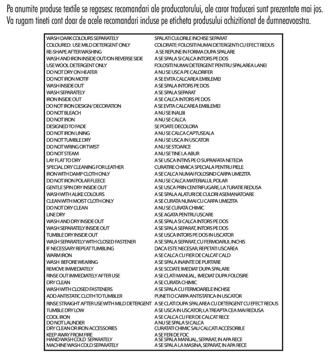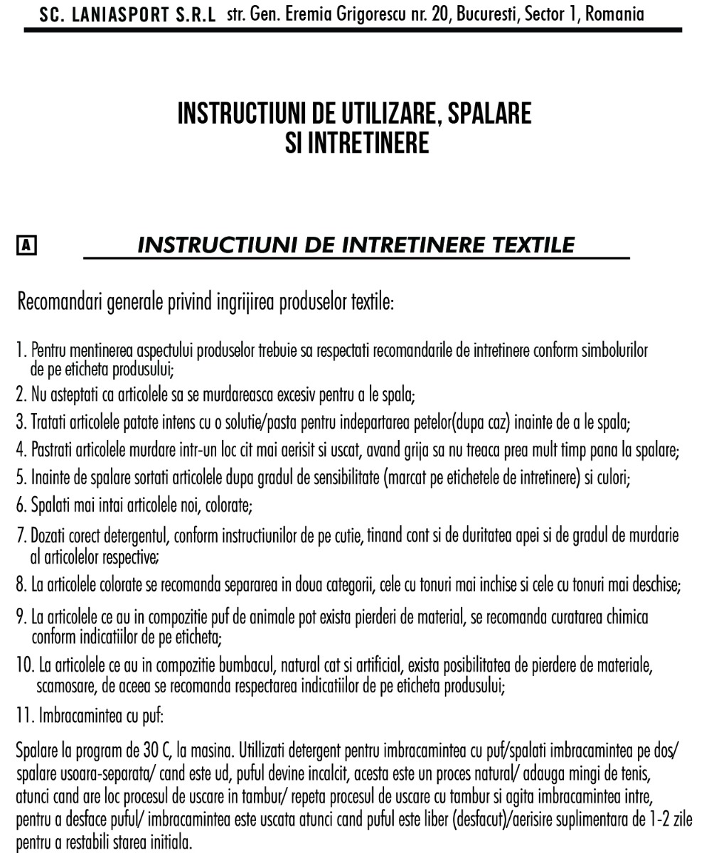 Conditii de intretinere
